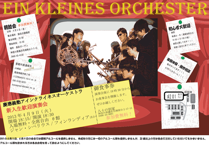 新入生歓迎演奏会(4月15日 場所:慶應義塾大学 湘南藤沢キャンパス θ館)